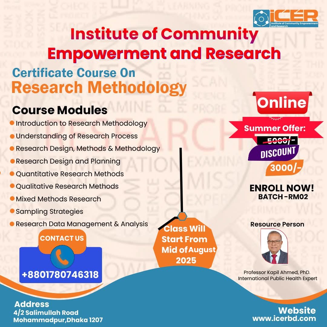 ICER (Institute of Community Empowerment and Research) is a Bangladesh-based academic and professional development platform dedicated to building a knowledge-driven, socially conscious, and empowered generation. Through research-based education, community-focused programs, and certified online training, ICER is shaping the future of individuals, institutions, and the society at large.